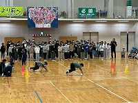 5年生と6年生による雑巾がけ対決など、笑顔のあふれる