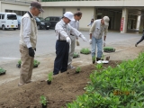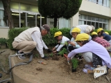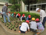 今回は、子どもたちが考えたデザインをもとに花を植えました。