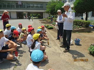 環境美化委員と3年生の子どもたちが「国東親父の会」の方々に