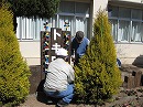 花壇の修理に伴い、一時取り外されていた風車が本日