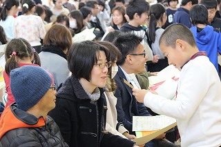 常盤小学校では、16日に、一学年から四学年及び特別支援学級の授業参観を行いました。その中、四年生は、体育館で二分の一成人式を実施しました。児童一人一人が将来の夢を語り、二分の一成人証書を担任の先生から授与されました。その後の呼びかけや歌も大変よくできました。また、全児童が、お家の人に感謝の手紙を送りました。大変感動的な式でした。