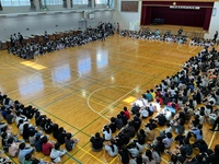 全校児童684名、「笑顔と元気、しあわせあふれるわが母校」