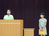 新しい先生や仲間を迎え、今日から2学期が始まりました。始業式では、まず、2人の児童が2学期に頑張りたいことを発表しました。新しいことにも挑戦したいという気持ちが伝わってきました。校長先生の話を聞くときや校歌を歌うときの姿勢も素晴らしかったです。