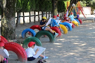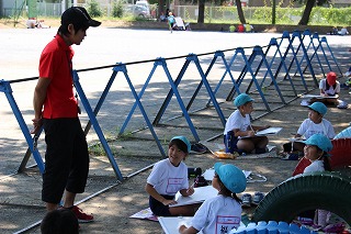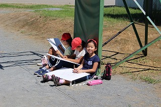 常盤小学校、2学期はじめの学校行事は、各学年の写生会です。9月1日、3年生の写生会が、校庭で行われました。台風の接近で心配されたお天気も快晴となり、絶好の写生会日和でした。児童一人一人が熱心に作品の制作に取り組んでいました。
