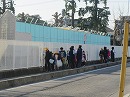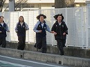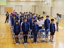 6年生が正門でつぶやきます