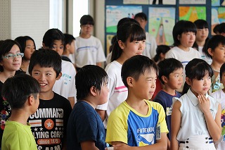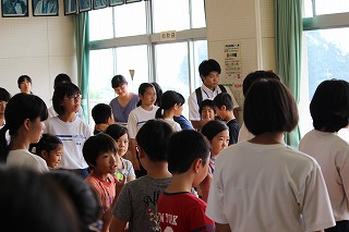 常盤小学校では、10月24日に行われる市内小学校音楽会に、4年2組が学校の代表として出演します。練習が今日から始まりますが、最初、幡羅中学校の音楽部の練習に入って発声をご指導していただきました。児童のみなさん、身体や呼吸の使い方など専門的なご指導を生かせるようしっかり練習しましょう。