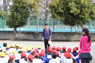 常盤小学校では、4月12日、学年ごとに朝会を行いました。昨日の雨が上がり、今日は温かでさわやかな朝となりました。外での朝会は2年生から5年生までが実施しました。どの学年も集中して、先生や同級生のお話をしっかりと聞けていました。
