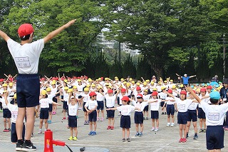 常盤小学校では、来る26日の運動会に向けて、18日、全体練習を行いました。開閉会式隊形、ラジオ体操、ジンギスカン、応援合戦の練習をしました。朝から暑い日となりましたが、児童は元気に練習に取り組んでいました。運動会まで一週間です。頑張りましょう。