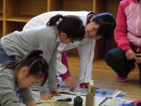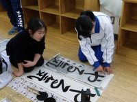 書きぞめ選手による練習が始まりました。練習2日目の今日は、深谷第一高校書道部の生徒さんが指導支援に来てくれました。苦手な部分の練習を手をとり指導してくれたり、直した方が良いところを助言してくれたり、大変有意義な時間でした。第一高校の皆さんありがとうございました。