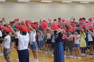 常盤小学校では運動会に向けての練習が本格的になってきました。今日の昼休み、全校児童が赤、黄、青、三つに分かれて応援の練習を行いました。5,6年生が中心となってそれぞれが熱心に練習に取り組みました。迫力満点の応援になってきました。運動会がとても楽しみです。
