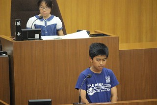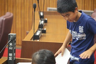 深谷市では、7月31日、小中学生が一日議員になって市の行政機関に対して質問をする子ども議会が開催されました。常盤小学校からは、6年生の米山君が代表として、午前の小学校の部にl参加しました。