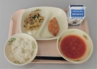 今日は6年4組のリクエスト給食です。給食でも人気のメニューが並んでいます。その中でもこんにゃくが入った上州サラダや、野菜たっぷりのスープなど、健康への関心が集まったメニューとなりました。