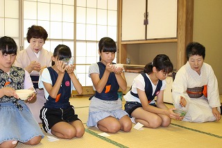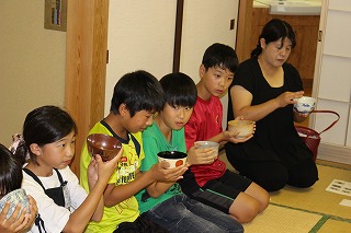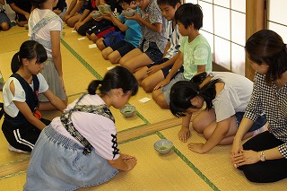 常盤小学校では6月28日、6年生が茶の湯体験を行いました。城址公園の掃部寮で茶の湯を体験しました。指導者として進藤先生をお招きして、本格的な茶室を借りての体験学習となりました。子どもたちは多少緊張しながらも日本の伝統文化に楽しみながら触れることができました。お手伝いいただきました保護者と関係のみな様に心から感謝いたします。