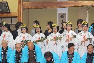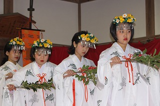 常盤小学校の6年生女子児童が、3月3日、学区内の楡山神社の典祭の中の奉舞に参加しました。あいにくのお天気でしたが、児童は日頃練習した舞を見事に披露することができました。地域の伝統文化に触れる機会を与えていただいた原郷の関係の方々に感謝いたします。