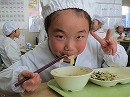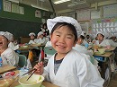 今年度最後の給食は、スパゲティナポリタンです。トマトの酸味でおいしくペロリンできますね。チキンの香草焼きも、バーブの風味で食が進みます。