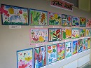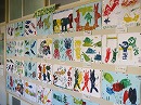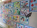 スマイル教室前ピロティーには埼玉県児童生徒美術展の出品作品が