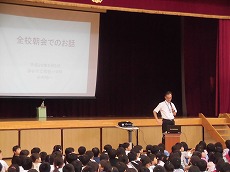 校長先生から、全盲の新井淑則先生のお話がありました。