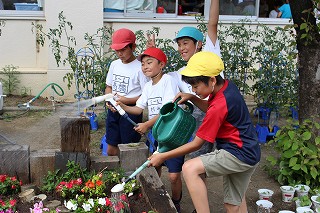 常盤小学校では6月19日、花はなプランとして学校応援団の皆様にご指導いただきながら花壇に花の苗を植えました。環境緑化委員と3年生が中心となって植えた季節の花によって、正門に近い所の花壇は見事なお花畑になりました。ご指導いただいた国東親父の会の皆様には心から感謝いたします。