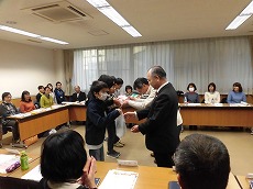 今日は、幡羅公民館にて代表児童が民生児童委員の方々に