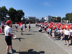 初めての練習なので、応援団の人たちが最初に手本を見せてから、