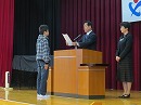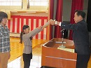 クラスの代表が壇上にあがり校長先生からしっかりと手渡されました