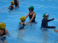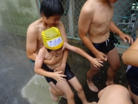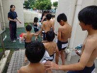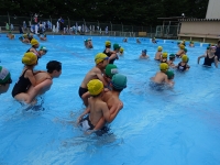 今日は、1年生と⒍年性の「なかよしプール」を行いました。1年生は、準備体操から⒍年性と一緒でとても嬉しそうでした。シャワーや水慣れも優しいお兄さん、お姉さんの監督の下、しっかりできました。⒍年性に手を引かれ気持ちよく泳いだり、⒍年性の大きな背におんぶしてもらったり楽しいプールになりました。