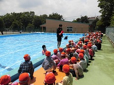 発達段階に合わせた内容で着衣泳を行っています。