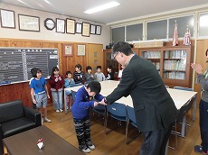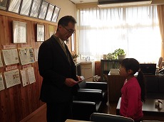 子どもたちは校長室で賞状をもらえるということで