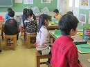 教室同様に先生の話をきちんと手をうしろにして