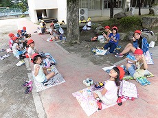 班のみんなで輪になって仲良く食べました。