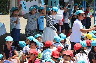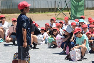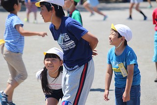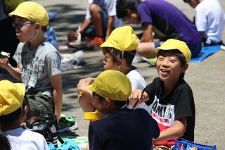 常盤小学校では6月17日、「青空給食」と称して家から持参した弁当箱に給食を詰めて校庭に出て、縦割り班で給食を食べました。梅雨にもかかわらず、さわやかないいお天気に恵まれて児童は楽しみながら給食を食べました。食後は6年生が中心となって、縦割り班で様々な遊びを楽しんでいました。