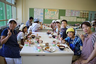 常盤小学校では8月8日、PTA対象の「豆を使った親子料理教室」と題して家庭料理では普段扱いにくい豆の料理教室を行いました。常盤小学校の食育の一環で、加藤栄養教諭が指導者となって豆の料理に親しみました。最後は、作ったお料理をみんなで試食して楽しい時間となりました。