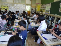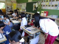 3年生の書写の授業で初めての毛筆練習がありました。今年は、深谷第一高校書道部の皆さんが支援にきてくださいました。3年生は、お姉さん達に見守られ、先生の話をしっかり聞き、墨を入れるときは真剣そのものでした。これから、練習を重ね、筆の扱いも上手になっていくでしょうね。3年生、応援しています。深谷第一高校書道部の皆さん、ありがとうございました。