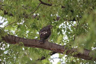 常盤小学校では8月に入り、児童がプール等で学校に来る機会がめっきり減って、校庭の様子は静かです。その代わり、校庭の欅の木に「チョーゲンボー」という鳥が巣を作りました。昔からこの辺の平地に生息している猛禽類で、ネズミや蛙などをえさとしているようです。小さくても鷹などの仲間なので常盤小学校の校庭にカラスの姿が見られなくなっています。