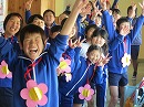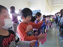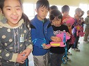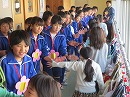 うれしそうに受け取る6年生 歓喜の6年生