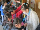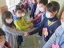 優しく声をかけながら手渡しをする2年生