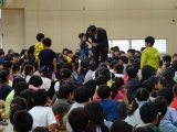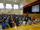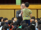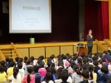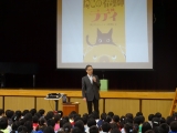 今週から人権旬間になります。そこで、今日は人権朝会が行われました。校長先生の講話と読み聞かせです。スクリーンに映し出された画像を見ながら、そして、美しいバックミュージックとともに、「ねこの看護師ラディ」の絵本の読み聞かせがありました。どの子も真剣に、話に耳を傾けていました。「自分も友達も大切にする。」というメッセージを込めた読み聞かせでした。その後、友達を大切にするためにどんなことができるか、どんなことをしているか、数名の児童にインタビュ-しました。児童からは、「あいさつする。」「やさしくする。」などの答えが返ってきました。