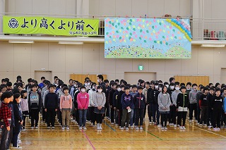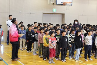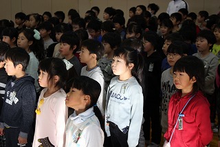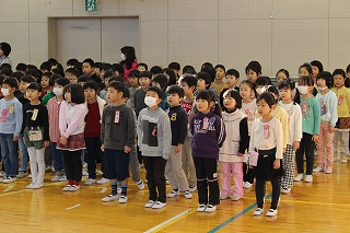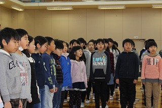 常盤小学校では、2月12日、三学期の音楽朝会を開催しました。児童は、ここのところの寒さにも負けず、一生懸命歌いました。今月の曲は「ビリーブ」です。体育館に響いた美しい歌声は、もうすぐ訪れる春を感じさせるものでした。