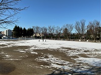 先週末に降り積もった雪は、常盤小学校の校庭にもまだ残っており、