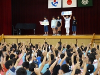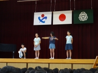 委員会による集会のトップをきって、保健委員会が集会を行いました。内容は、熱中症予防です。劇とお話で熱中症予防についてわかりやすく説明しました。その後、クイズで理解できたか確認しました。今週は暑い日が続きそうです。今日の集会の話を心に置いて熱中症にならないように気をつけて過ごしましょう
