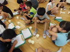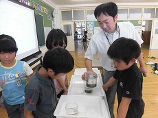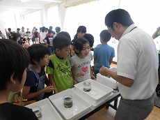 子供たちは「たった一滴の醤油でとても水を汚してしまうのに驚いた」