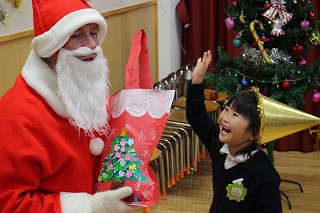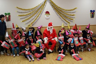 お隣の常盤幼稚園では、12月18日、Xmas会を実施しました。サンタさんが来てプレゼントを配ってくれたので園児達は大喜び。歌を歌ってサンタさんにお礼を言いました。児童のみなさんにもプレゼントが届きますように。