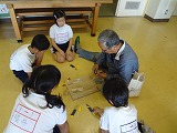 3年1組の子供達に竹とんぼの作り方を教えていただきました。