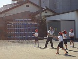 出来上がると、校庭に出て竹とんぼの飛ばし方も教わりました。