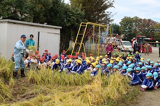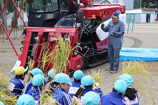 農協のお計らいで、大きなコンバインも学校に来て脱穀の様子も観ることができました。関係の皆様に心から感謝いたします。