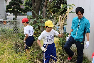 常盤小学校では11月1日、5年生が学校ファームで稲刈りの体験学習をしました。1学期に田植えの体験をして2学期は稲刈り、雨の影響で延び延びになっていましたが、やっとこの日を迎えました。児童は、常盤幼稚園の園児と一緒に、楽しそうに体験学習に取り組んでいました。