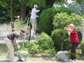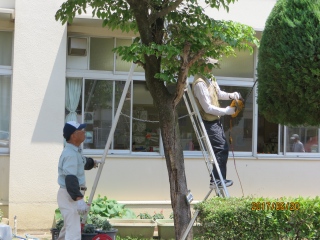 北校舎前の樹木の剪定をしてくださいました。