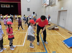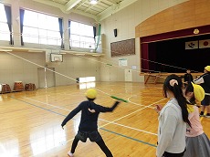 投げるのが苦手な子達のために、体育館で運動委員と職員によって