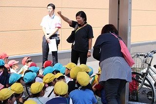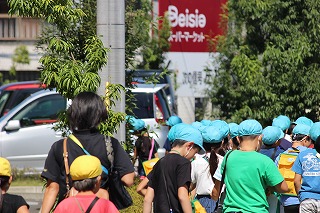 常盤小学校3年生は、社会科の学習として学区内のスーパーマーケット、「ベイシア国済寺店」を見学させてもらいました。-25度の超大型食料用冷蔵庫の中や鮮魚をさばいている様子など、普段観ることができない設備やお仕事の様子を見学することができました。子供たちは、スーパーで働いている方たちのお陰で、手軽に買い物ができることを学習しました。