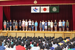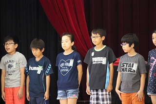 熱中症の予防のために劇やクイズで、説明してくれました。保健委員全員が、自分の役割をきちんと果たし、立派な集会ができました。また、廊下歩行調べの結果を報告し、安全に気をつけて生活するよう呼びかけました。先週の廊下歩行向上週間の成果もあり、廊下の歩き方はよくなっています。引き続き、熱中症対策と廊下歩行に取り組みます。